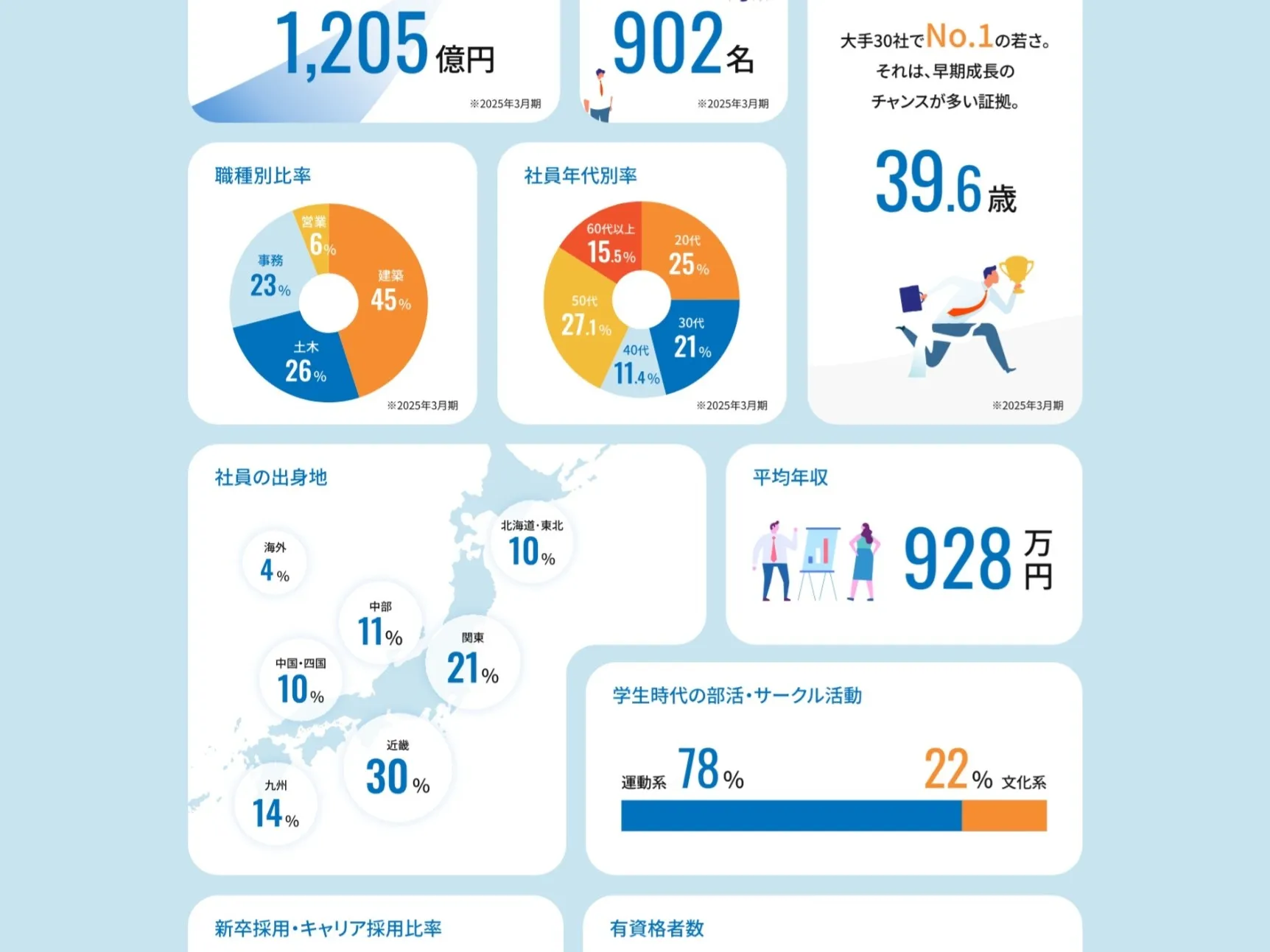 数字で見る錢高組 ・・・当社の魅力を様々な「数字」から読み解きます。