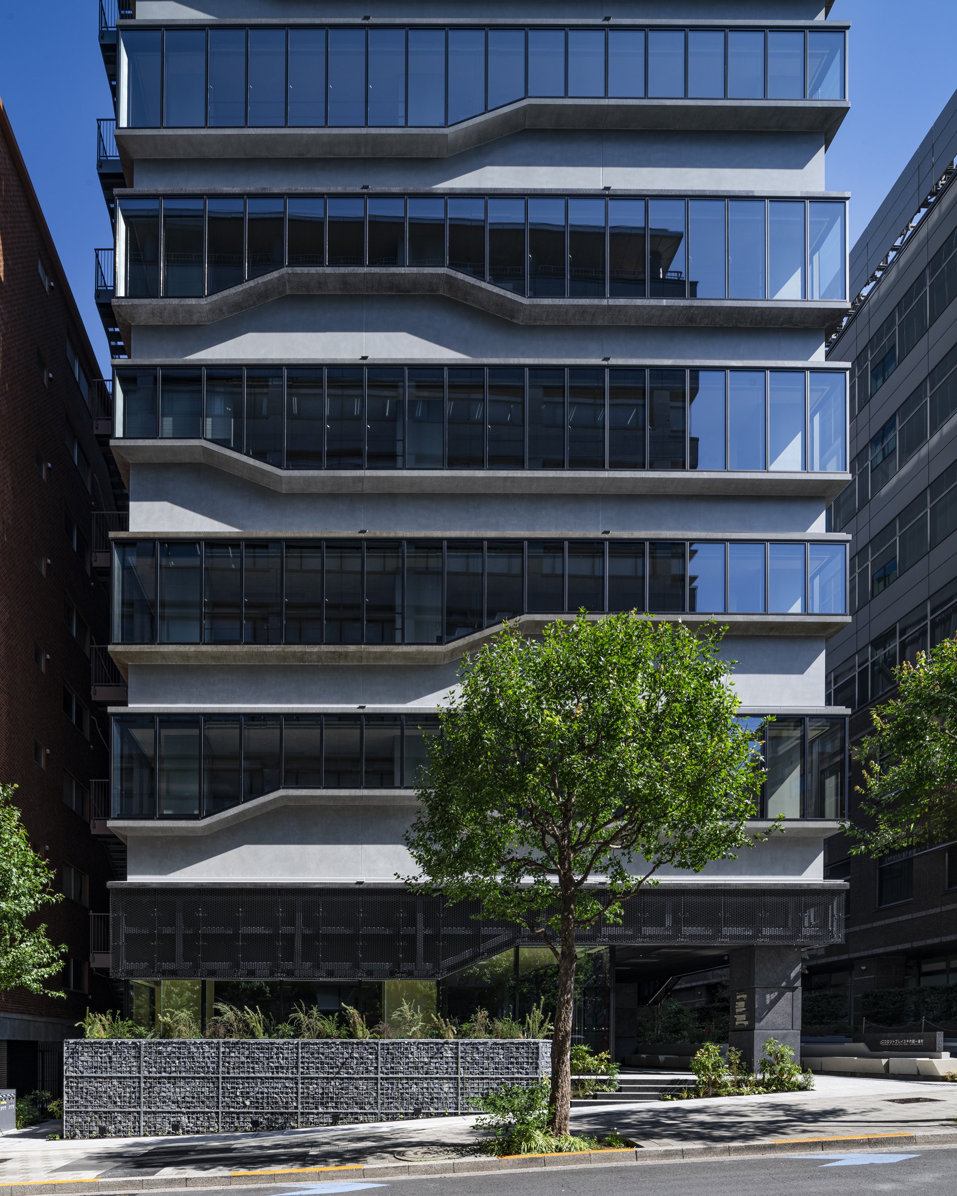 【審査委員の評価コメント】 均質化しがちなテナントオフィスのあり方を問い直し、街と働く人をつなぐ新しい仕組みをつくった建築である。フロアごとに異なる形の出窓は、窓際をベンチやデスクとして活用でき、働く姿が街へにじみ出る外観を生んでいる。窓際から活動が広がることで、利用者が場所への愛着を持ちやすい点も評価できる。さらに坂のある一番町の地形を生かし、高低差を利用した外構空間やカフェを開放する設えによって、通りに賑わいと人の居場所をもたらしている。オフィスをただの箱ではなく、街に開かれた活動の舞台として再構築した好例である。 |