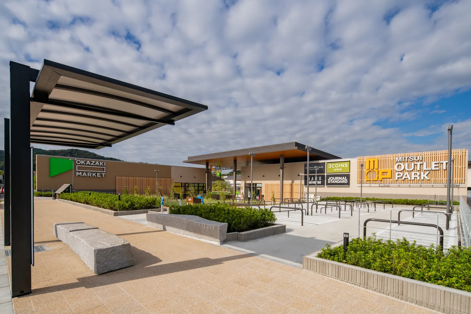 愛知県初の本格的アウトレットモールである本施設は、非日常的なお買い物体験ができるアウトレットゾーンと、日常使いができる緑豊かな公園型施設「OKAZAKI MARKET」が共存する、新しいコンセプトのアウトレットモールです。
